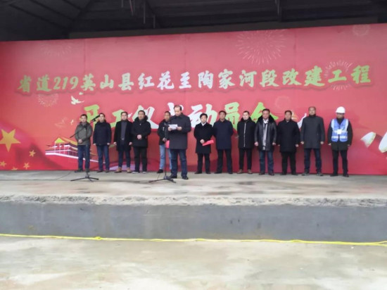 2月18日上午,黃岡市英山縣省道219紅花至陶家河段改建工程開工儀式動員會在項目施工現場舉行。英山縣副縣長阮利紅、英山縣政府常委盧峰、英山縣交通局局長馮矯正、建設指揮部指揮長王欣、湖北工建基礎設施公司黨委書記肖仲華出席開工儀式。
