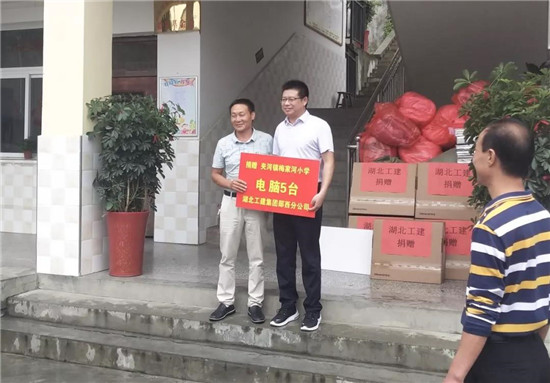 在慰問活動中,鄖西項目黨支部書記江杰代表項目向夾河鎮梅家河中心小學捐獻慰問物資電腦5臺,折合達1.5萬余元。