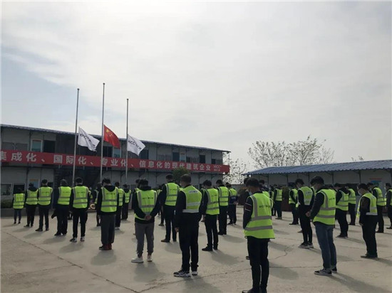 4月4日,全國哀悼。上午10時,湖北工建基礎(chǔ)設施公司各項目部降半旗,廣大職工肅立默哀3分鐘,共寄哀思。襄陽黨總支和當陽項目黨支部還組織觀看了武漢戰(zhàn)“疫”全景紀錄片《英雄之城》。