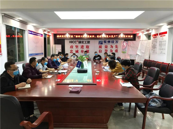 4月18日,福州項目黨支部開展“講好工建抗疫故事、黨建引領復工復產”主題黨日活動