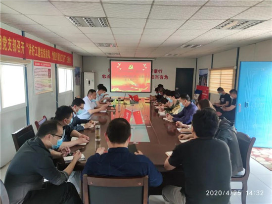 4月26日,鄖西項目黨支部開展“講好工建抗疫故事、黨建引領復工復產”主題黨日活動