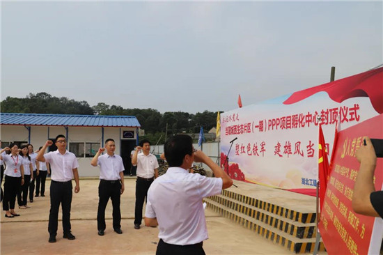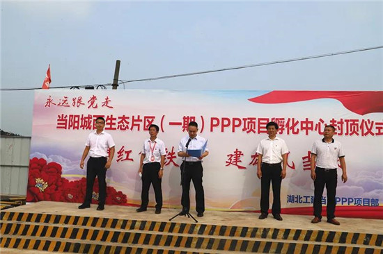 7月1日上午,湖北工建基礎(chǔ)設(shè)施公司機(jī)關(guān)黨支部與當(dāng)陽(yáng)項(xiàng)目黨支部“建功新時(shí)代,永遠(yuǎn)跟黨走”聯(lián)合主題黨日活動(dòng)暨孵化中心封頂儀式在項(xiàng)目施工現(xiàn)場(chǎng)舉行。當(dāng)陽(yáng)市政府相關(guān)領(lǐng)導(dǎo),公司領(lǐng)導(dǎo)及機(jī)關(guān)支部全體黨員、預(yù)備黨員、入黨積極分子,當(dāng)陽(yáng)項(xiàng)目全體員工,湖北工建當(dāng)陽(yáng)項(xiàng)目聯(lián)合黨支部全體黨員參加活動(dòng)。