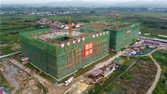 隨后,孵化中心舉行封頂儀式,各單位領(lǐng)導(dǎo)共同執(zhí)起金鍬,一起為項(xiàng)目完成最后一鏟土。隨著塔吊將最后一斗混凝土吊起,孵化中心正式封頂!