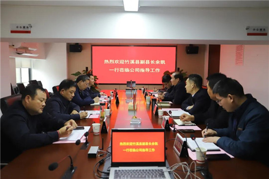 4月14日上午,竹溪縣副縣長余凱、竹溪縣住建局局長柯愛民、十堰市生態(tài)環(huán)境局竹溪分局局長郭承平、竹溪縣住建局副局長陳濤一行蒞臨我公司考察交流。公司黨委書記、董事長肖仲華,黨委副書記、總經(jīng)理金全勇等相關(guān)負(fù)責(zé)人出席座談會。